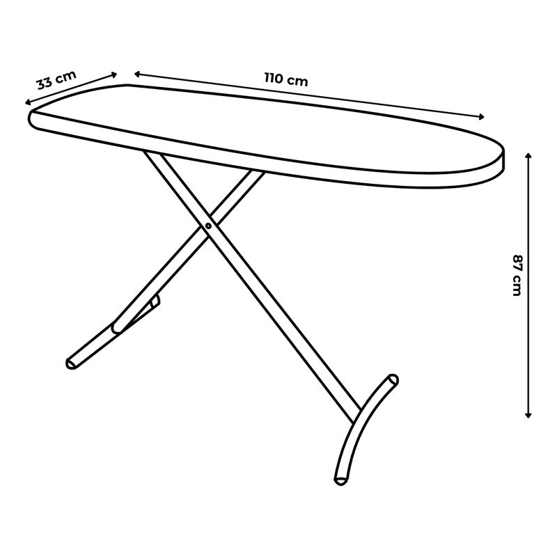 Mesa compacta, estable y resistente. Hecha en México con acero galvanizado y superficie MDP de 12 mm, que repele humedad y hongos. Acolchado de espuma que mejora el planchado.